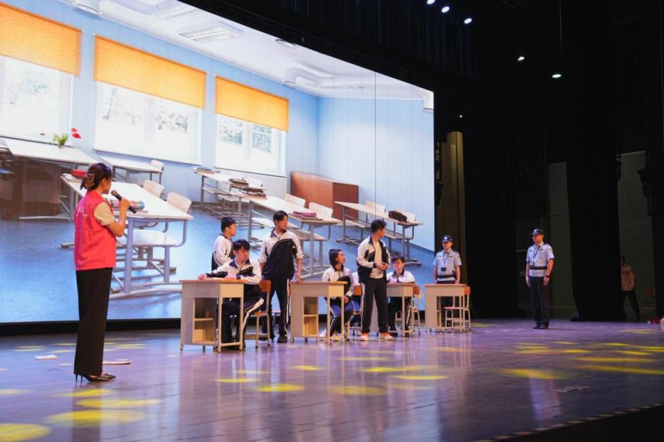 初秋的深圳,暑热不减。深圳市第二高级中学艺术教育基地前,南山区法院西丽法庭法官何婉身穿一身灰色的夏季制服,在满是蓝白校服的校园里格外醒目。 “何法官,这边!”深圳二高田雨老师挥了挥手,引着法官走进礼堂。“听说法官要来学校讲课,还有节目看,同学们个个都要报名参加!”田老师高兴地欢迎道。 这是首届湾区法治文化巡礼暨湾区新时代法治文艺“三进演出”活动开展以来,在深圳校园内举办的第三场文艺演出,由深圳市关心下一代工作委员会、深圳市中级人民法院指导,来自市、区两级的人大代表、政协委员,南山区人民法院有关负责同志,以及深圳市第二高级中学师生代表共1200余人参加活动。 ▲首届湾区法治文化巡礼暨湾区新时代法治文艺“三进演出”活动在深圳市第二高级中学成功举办 走进明亮宽敞的艺术教育基地,全场座无虚席。舞台的灯光渐次亮起,深圳法院彩虹老法官文艺宣传队的演员们用绘声绘色的表演,为台下观众带来了一场以真实案例为蓝本的反校园霸凌情景剧《不让青春留伤疤》。 ▲反校园霸凌情景剧《不让青春留伤疤》 “校园霸凌没有‘小打小闹’,每一次恶意碰撞都会在青春里留下伤疤。”剧目带来的深刻警醒还萦绕在学生耳边,南山法院西丽法庭法官何婉已走到台前,她结合情景剧案例,向同学们详细讲解了面对校园欺凌如何以法律武器提升自我保护能力,帮助同学们树立抵制校园欺凌的法治意识。 ▲南山法院法官何婉“现场说法”,教导同学们用法律武器提升自我保护能力 “扛竹板,走上场,今天来把宪法讲……”伴随着清脆有力的快板开合声,一段节奏分明、韵味十足的《说宪法》音乐快板紧随其后上演,节目将法律常识巧妙融入快板歌词,为师生们带来一场生动有趣的“沉浸式”宪法小课堂,台下的学生们听得津津有味,不时手脚并用,跟随敲打着节拍。 ▲音乐快板《说宪法》 小品《法治知识竞赛》则生动演绎了两人在法治知识抢答中出现的种种趣事,令人捧腹的同时引导学生思考公平正义的真谛。 ▲小品《法治知识竞赛》 由深圳中院退休干部侯继宽、张慧娟、张静演绎的小品《敬礼》,再现了战争时期革命老兵的英勇事迹和家国情怀,令在场观众深受触动,久久不能平静。 ▲小品《敬礼》 表演结束后,法官结合节目主题现场开展互动问答,同学们纷纷举手踊跃参与,法官一一耐心回复同学们的提问,现场气氛热烈。 ▲同学们踊跃提问 “这些节目真有意思,今天收获了一肚子法律知识!”走出艺术教育基地,学生们你一言我一语地讨论着刚才台上的精彩表演,青春的脸庞上洋溢着灿烂的笑容。 “这样的活动学生爱看,我们老师也喜闻乐见,同学们在与法官近距离、面对面交流的过程中能够了解法律、认识法律、尊重法律进而遵守法律,在法治文化熏陶与感染下成长为遵纪守法、有责任有担当的新青年。”活动结束后,深圳市第二高级中学高一年级主任邓思敏老师表示。 活动还举行了法治辅导员和法治副校长聘任仪式和赠书仪式。市中级法院原党组成员、机关党委专职书记谢军受聘担任深圳市第二高级中学法治辅导员,南山区法院法官何婉受聘担任法治副校长;深圳市委老干部局副局长钟艳妮,市中级人民法院政治部副主任叶银川,南山法院党组副书记、副院长黄振东共同向学生代表赠送普法书籍《中华人民共和国民法典》《民法典简易读本》等。 ▲法治辅导员和法治副校长聘任仪式 ▲赠书仪式 下一步,南山法院将持续创新普法方式,加强院校合作,用群众喜闻乐见的方式开展普法宣传,持续为青少年营造良好的法治教育氛围,共同守护安全、文明、和谐的校园环境,为未成年人健康成长保驾护航。 【发言汇总】 深圳市人大代表方成群:湾区法治文化巡礼暨湾区新时代法治文艺“三进演出”活动此次在学校演出非常有意义,既让同学们在观看法治节目的过程中感悟法律精神、树立守法意识,又能培育青年一代的爱国素养、高尚情怀,我观看了两场法治演出,节目很精彩,将真实案例融入情景剧,学生们爱看、也看的明白,这样的普法宣传方式非常好! 深圳市第二高级中学高一(2)班